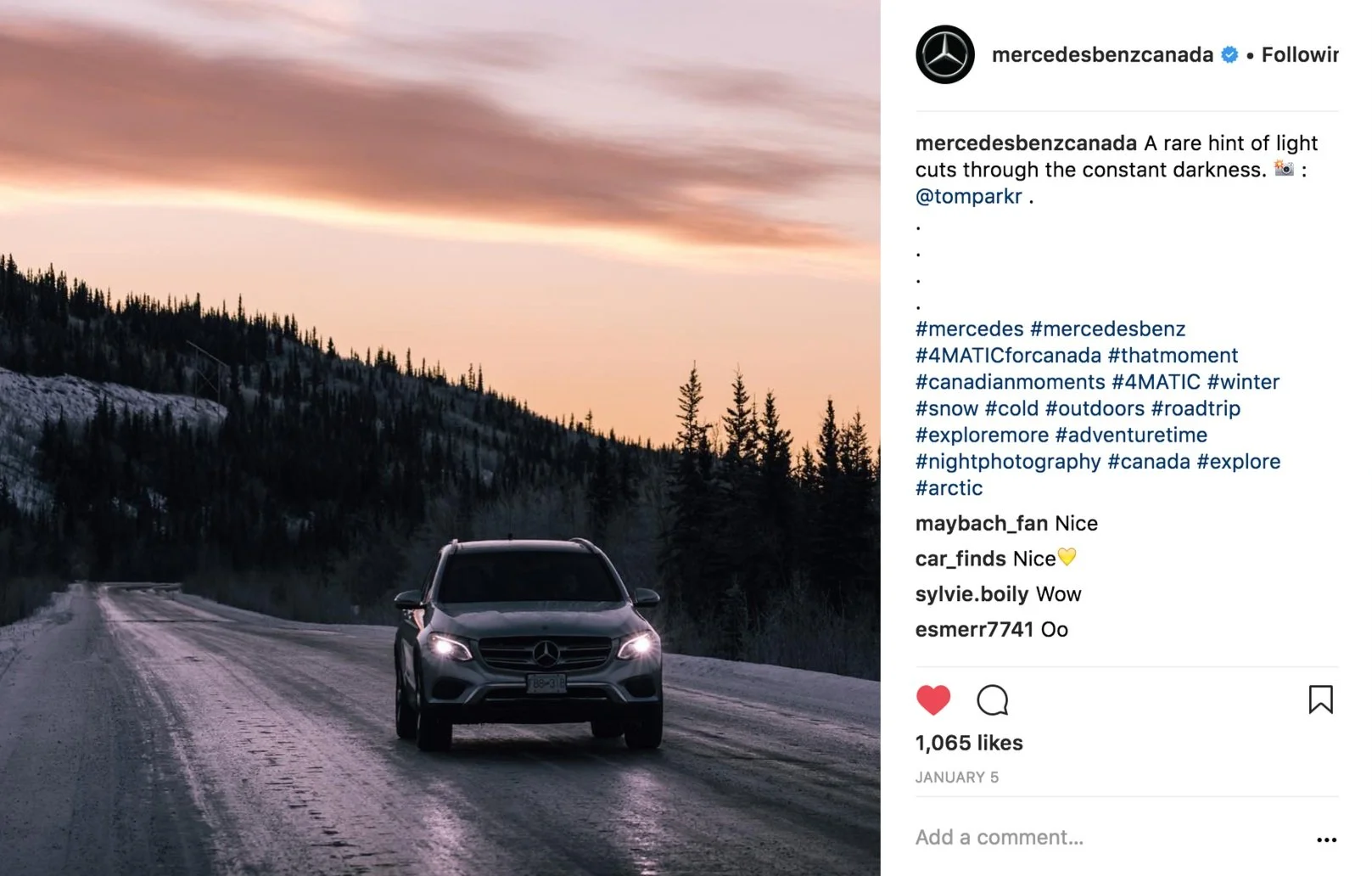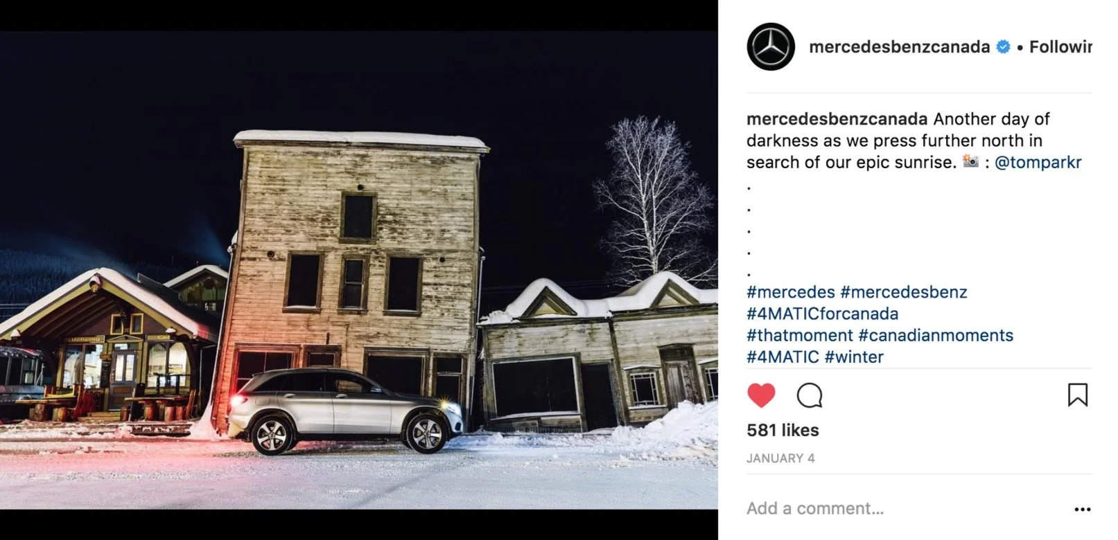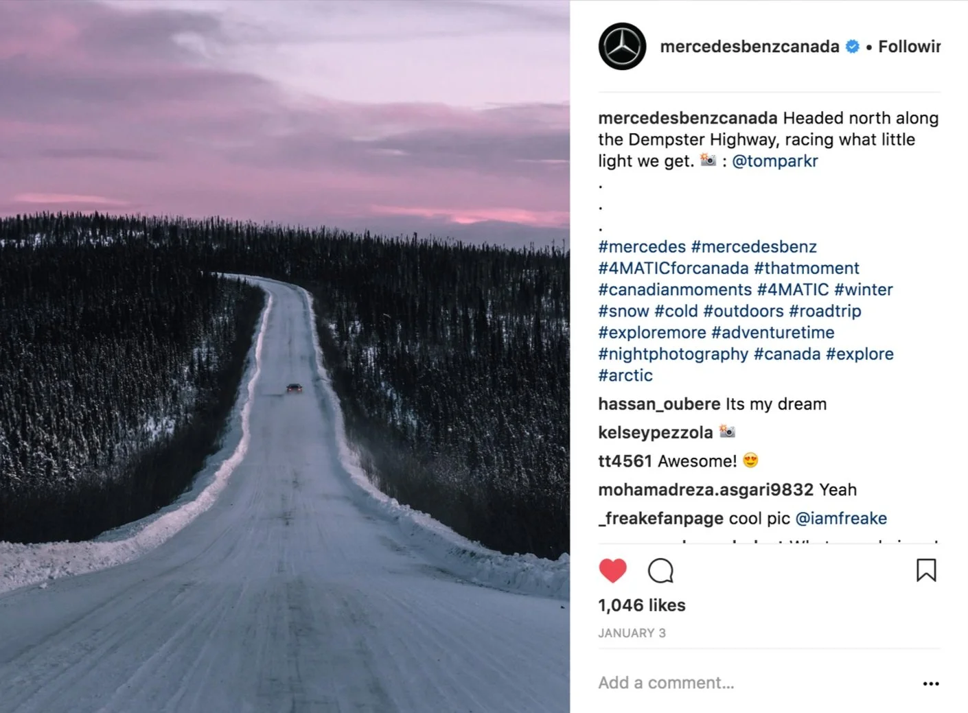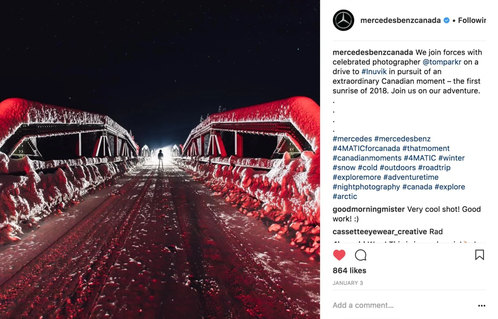 You partner with photographer Tom Parker, and drive a 4MATIC from Inuvik to Tuktoyaktuk along the ice highway to catch the first sunrise of the season while sharing the journey in real-time on your social channels.